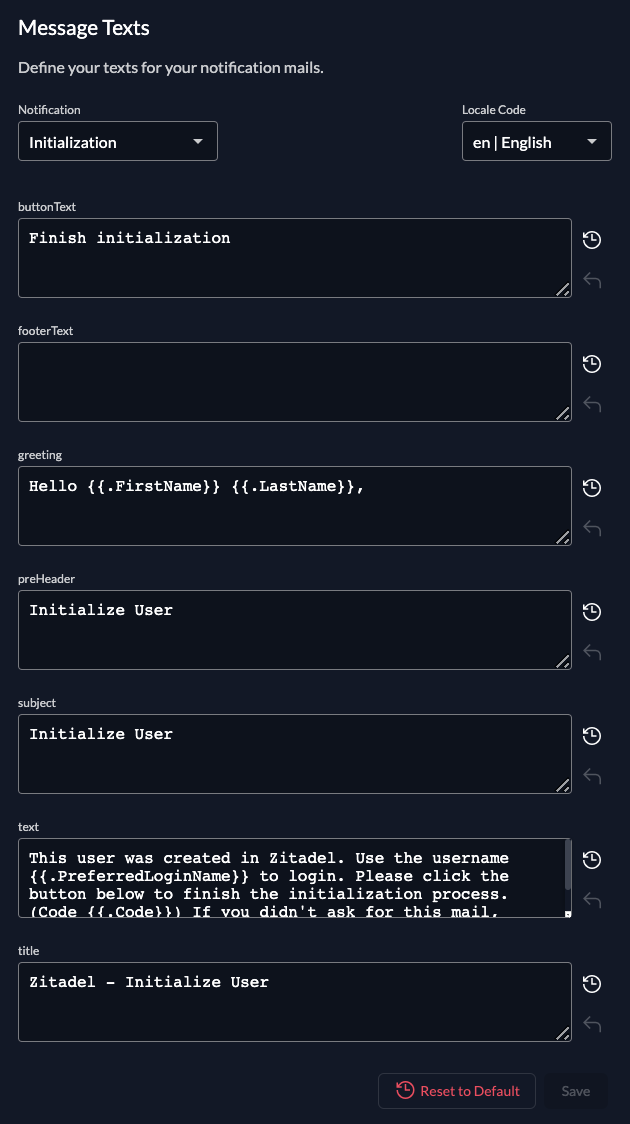 ZITADEL Default Settings